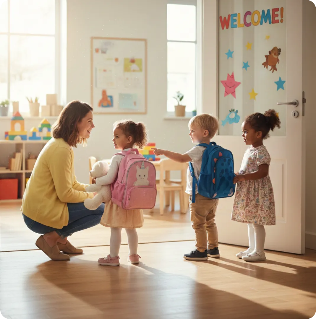 Please don’t sneak away, but help your child become engaged in the ongoing activities in the classroom. This may require planning a few extra minutes each morning, but will greatly benefit your child’s transition into the classroom.